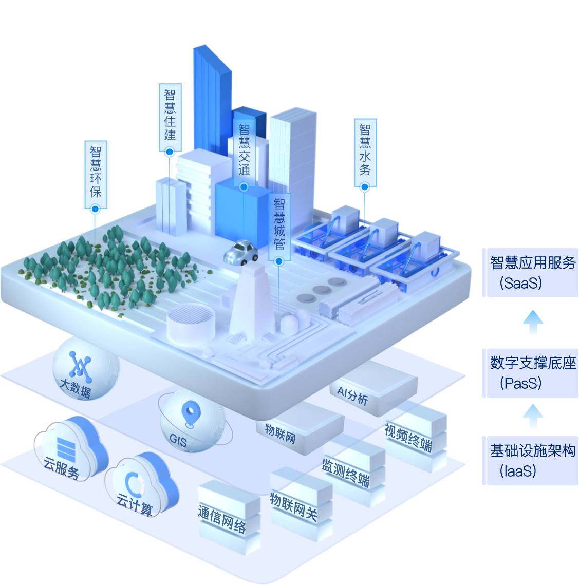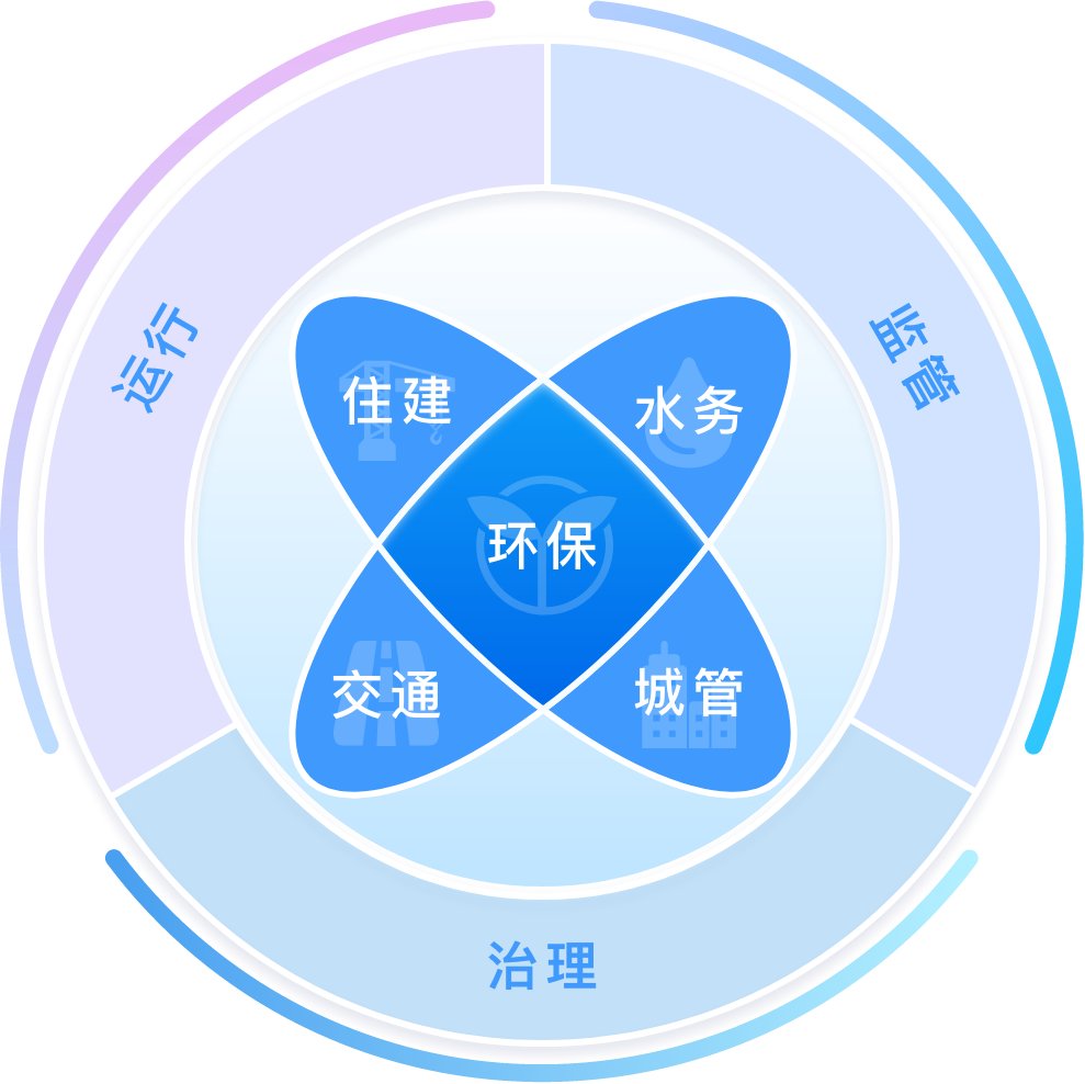 三大領域:城市運行、監管、治理;五大行業:環保、住建、水務、城管、交通